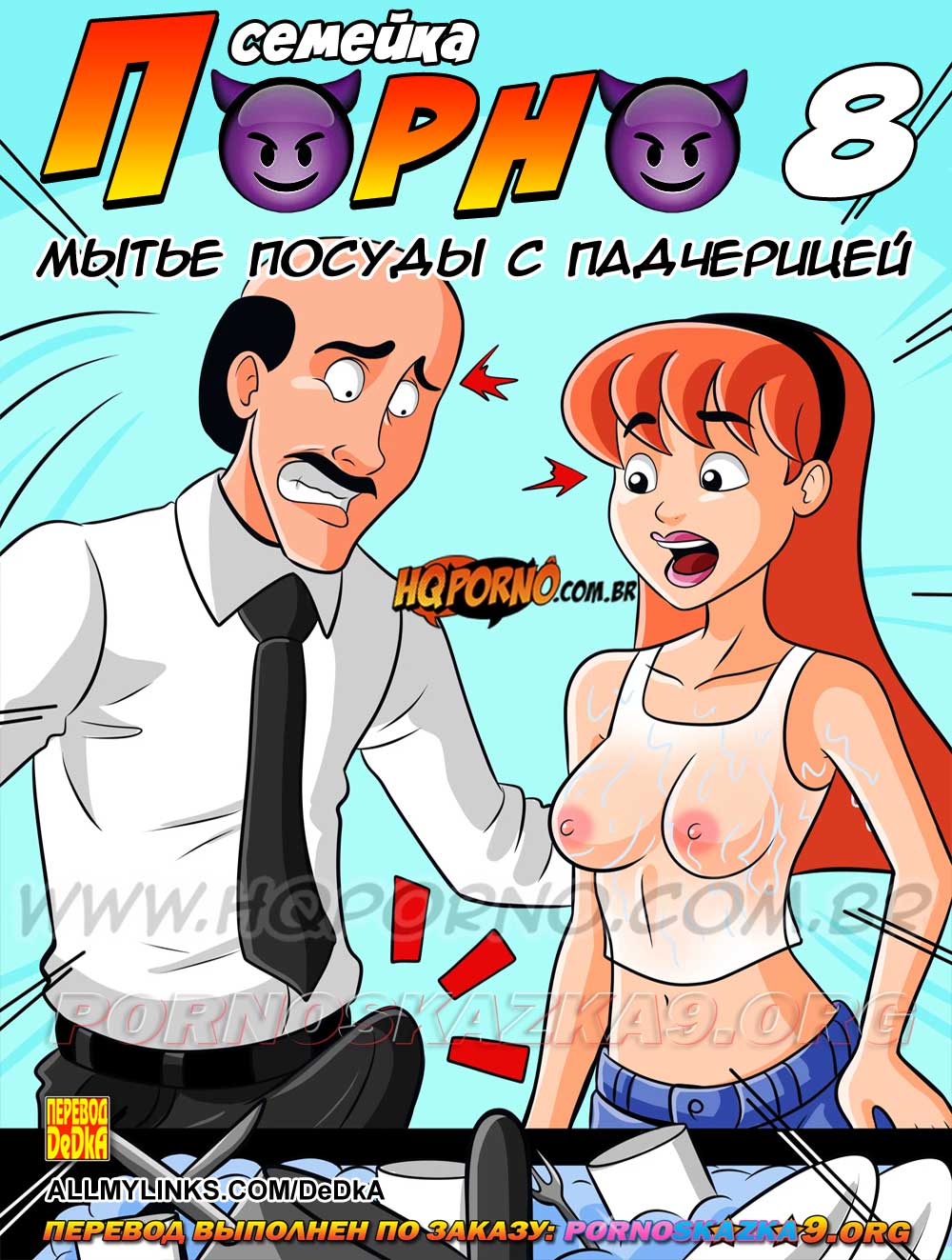 Читать далее 31 Июл 2025 16256 0Порно комикс «Семейка порно 8: Мытье посуды с падчерицей.»
