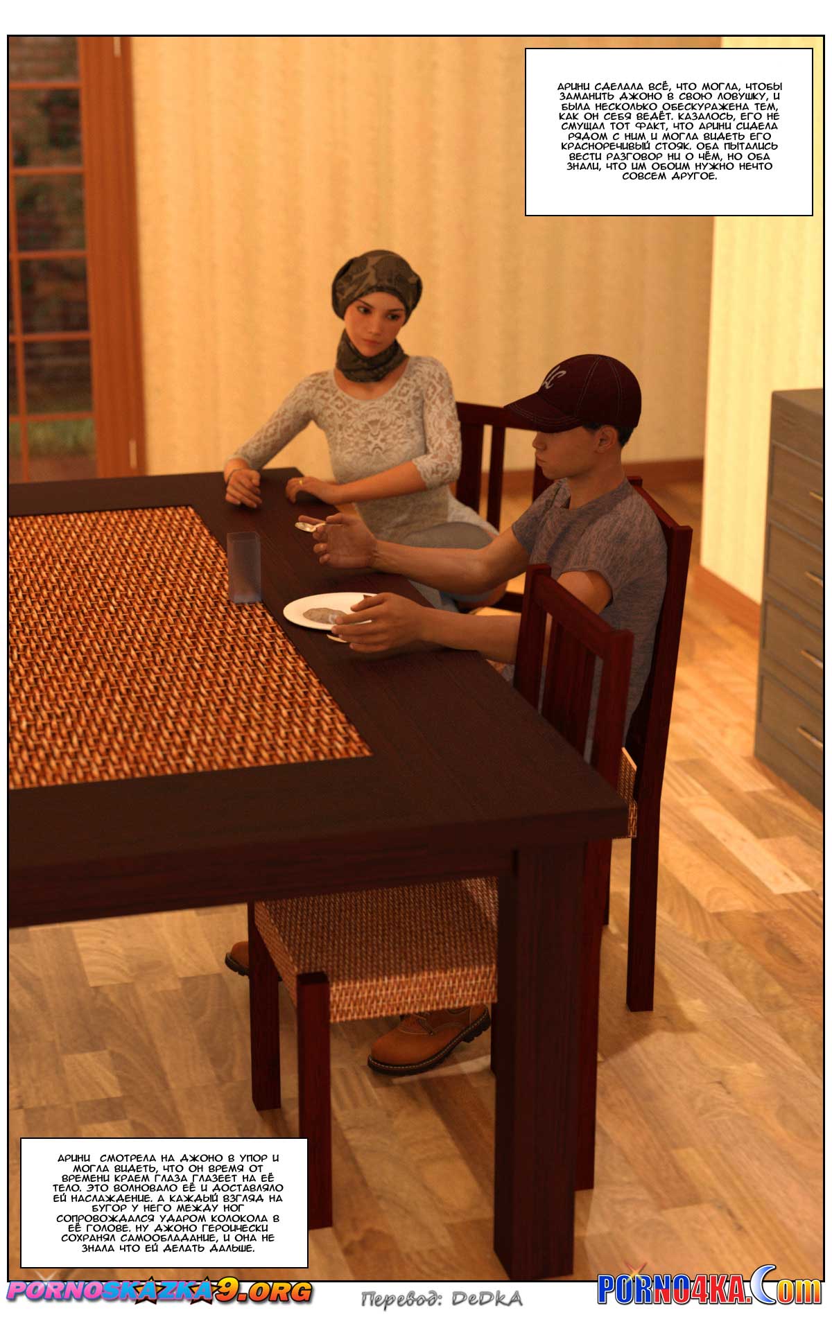 Возбужденная от всего того, что произошло днем, Арини с нетерпением ждала возвращения мужа с работы, чтобы заняться с ним сексом. Но муж не оправдал её ожиданий. Он вернулся домой поздно, поужинал, и уснул на диване. Арини долго ждала в спальне, что он проснётся и придёт к ней, но так и не дождалась. Зато утром, когда муж уехал на работу, Арини дождалась того, чего она ждала ещё больше чем секса с мужем. Она дождалась прихода Джоно…